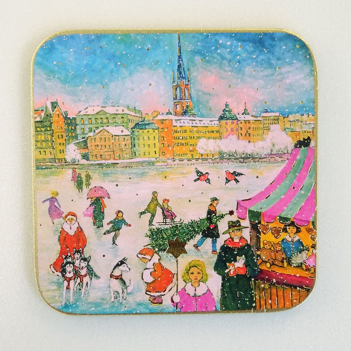 クリスマス コースター C-2593 クリスマスマーケット ヨーロッパの街並み スウェーデン ストックホルム Luka Basic