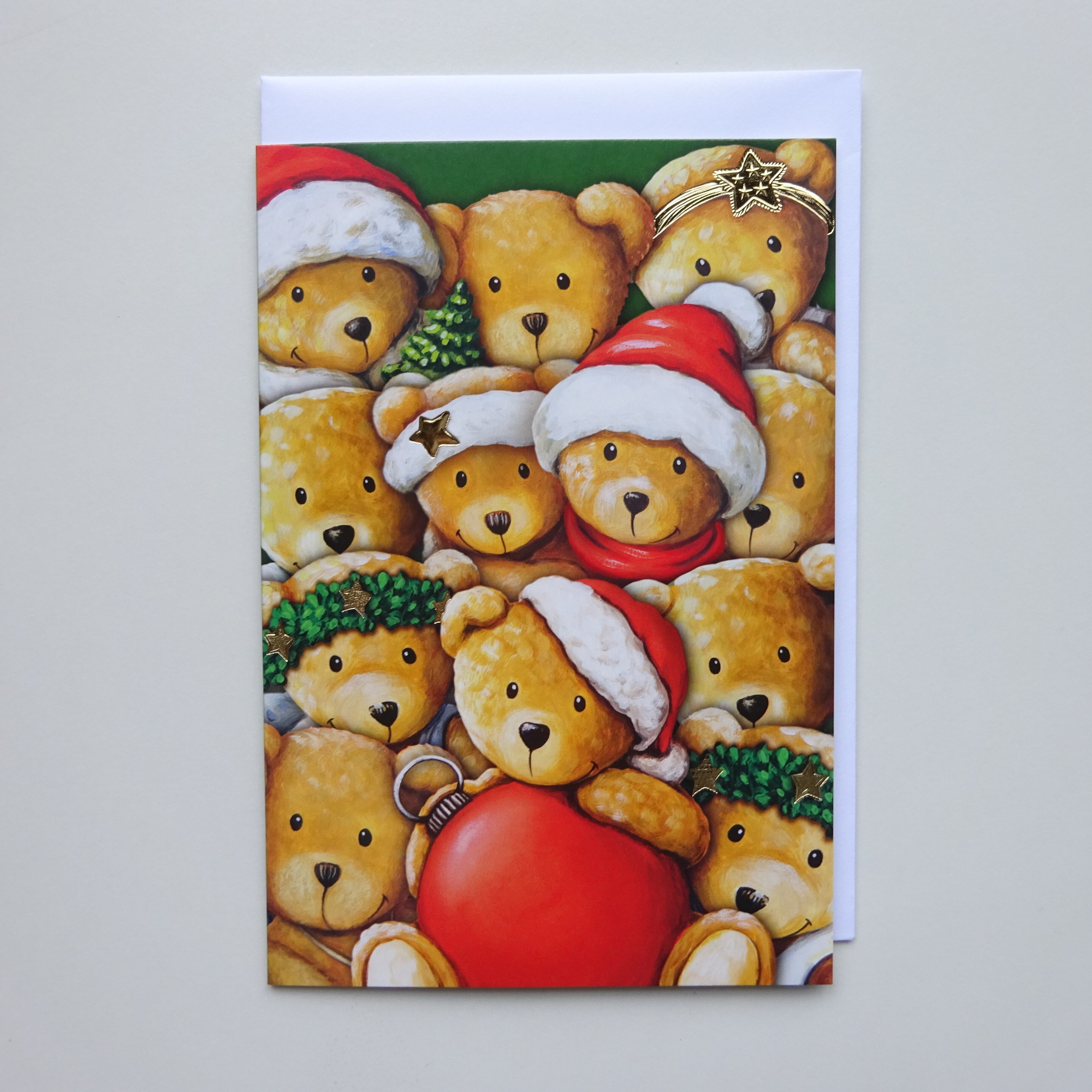 グリーティングカードの一部メタリックカラーの箔押し印刷が施されています。