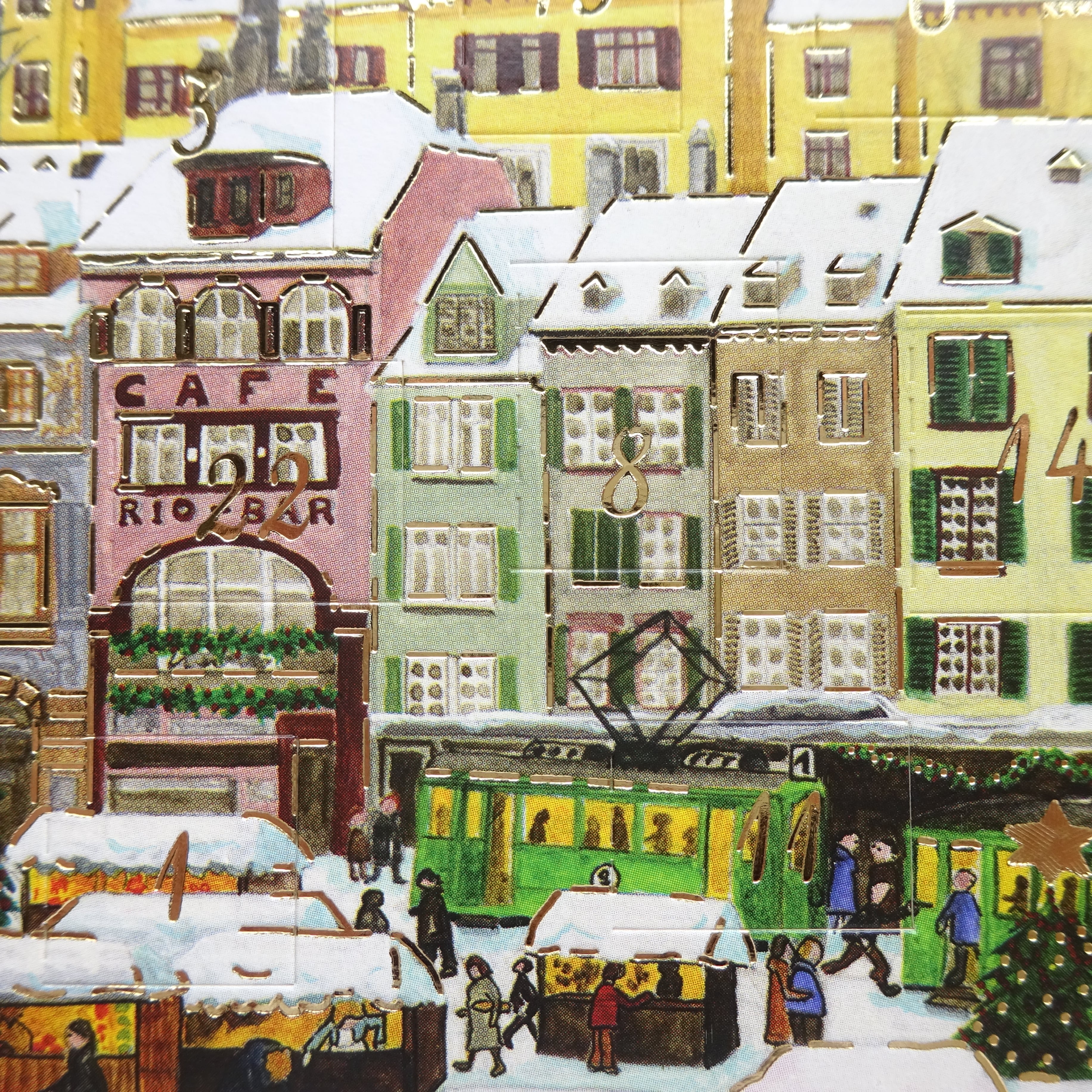 1日から24日まで毎日数字の箇所をめくって中の絵柄が楽しめるカードです。
