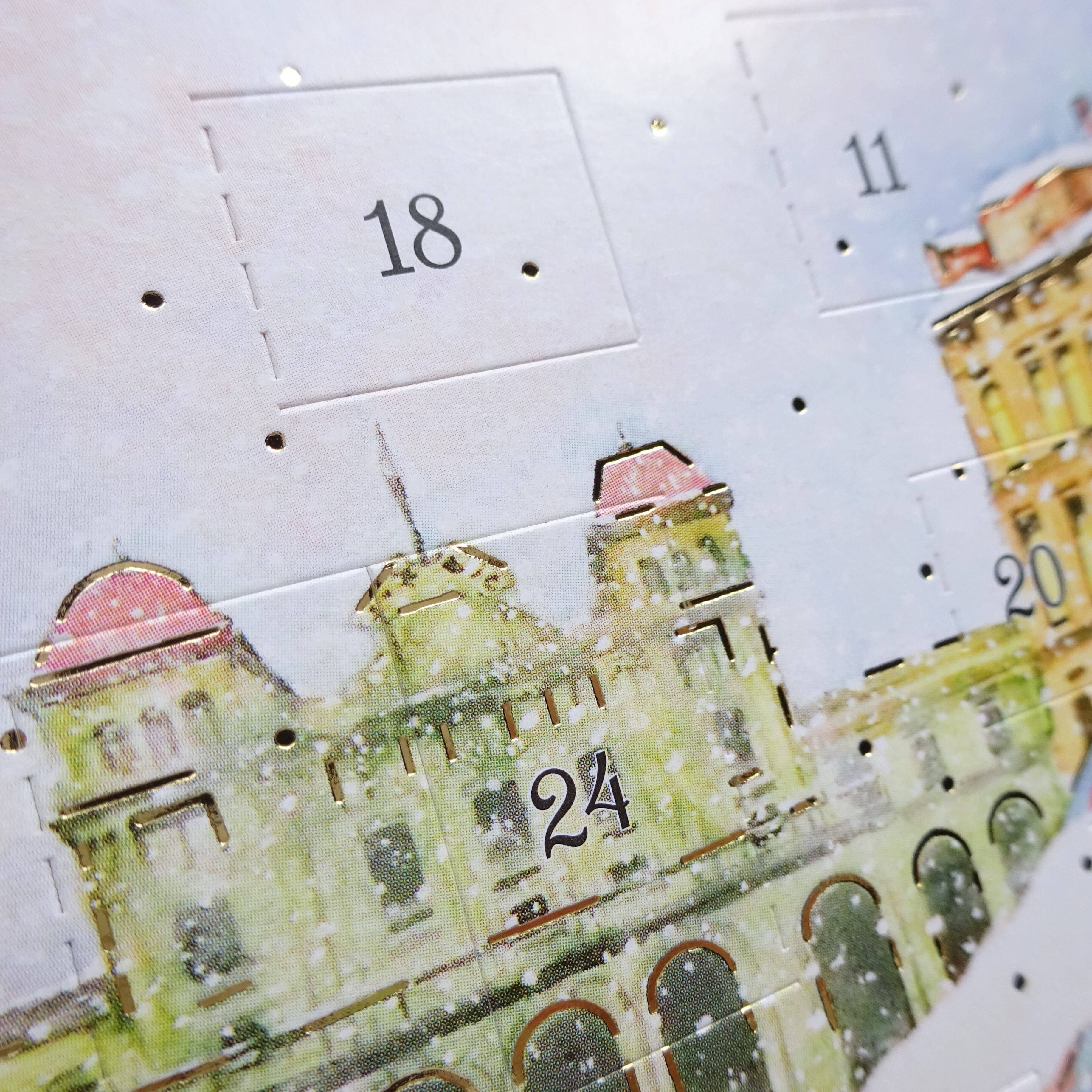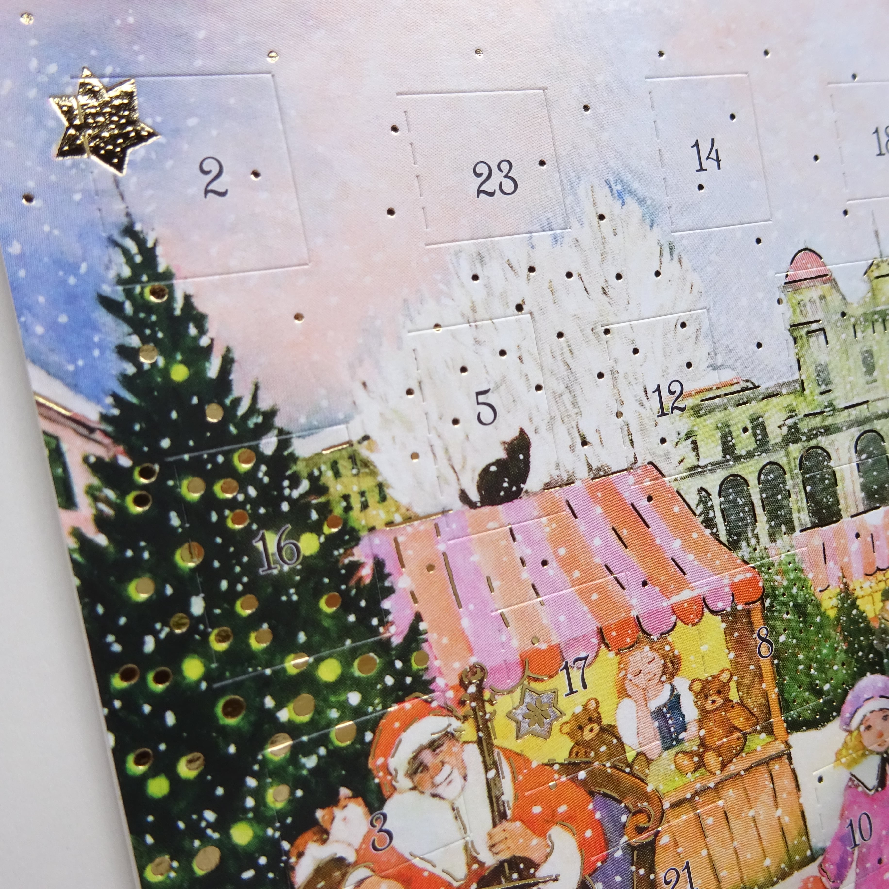 1日から24日まで毎日数字の箇所をめくって中の絵柄が楽しめるカードです。