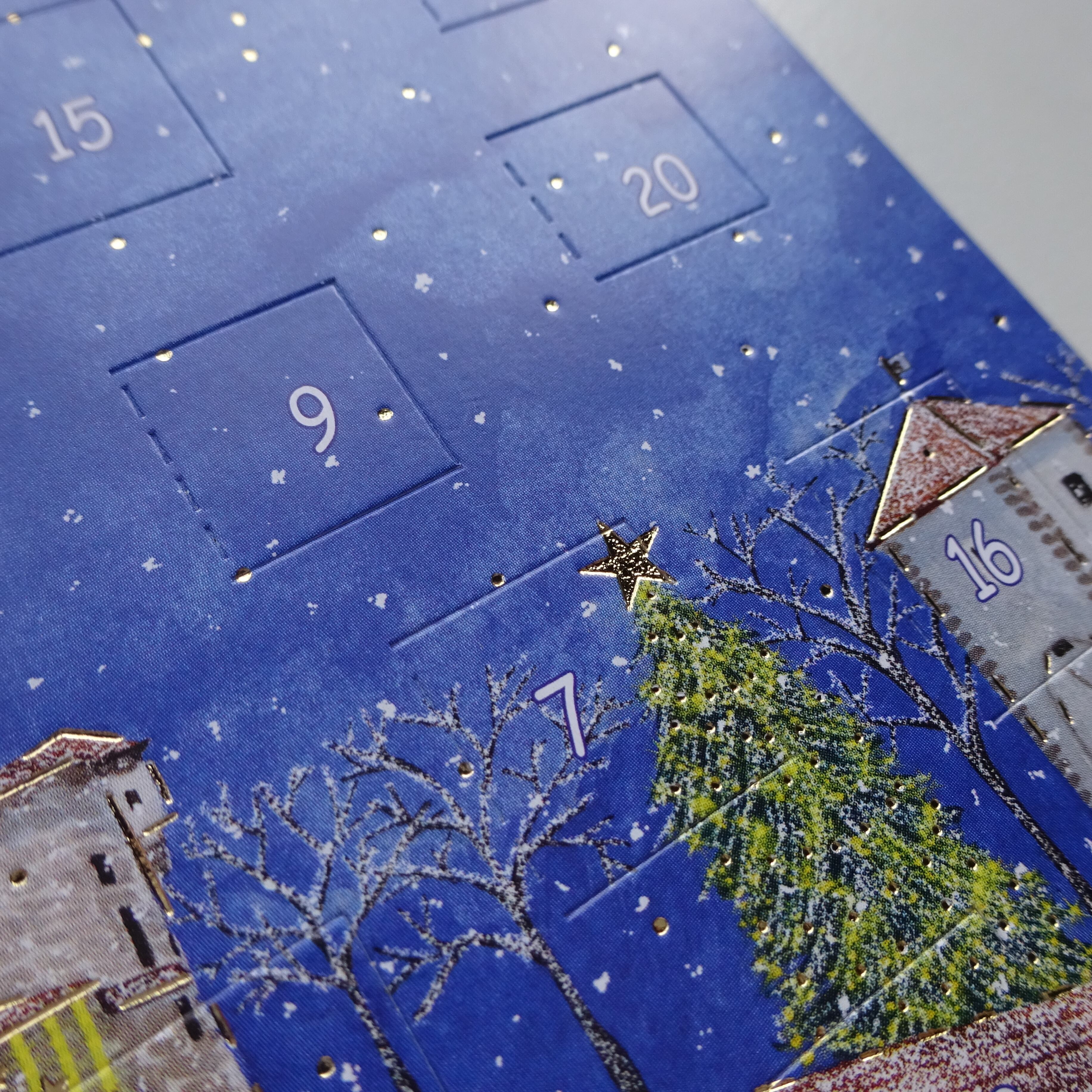 1日から24日まで毎日数字の箇所をめくって中の絵柄が楽しめるカードです。