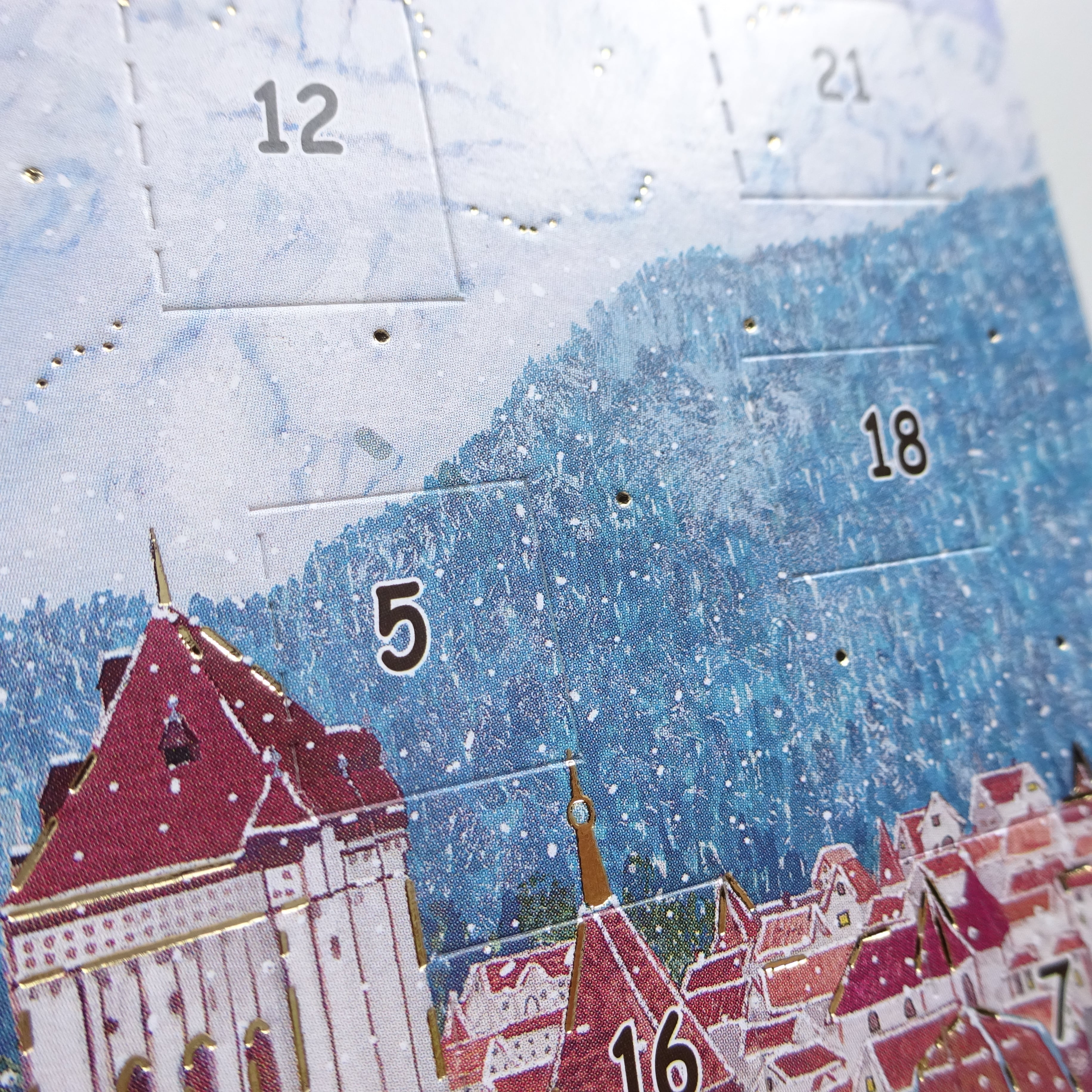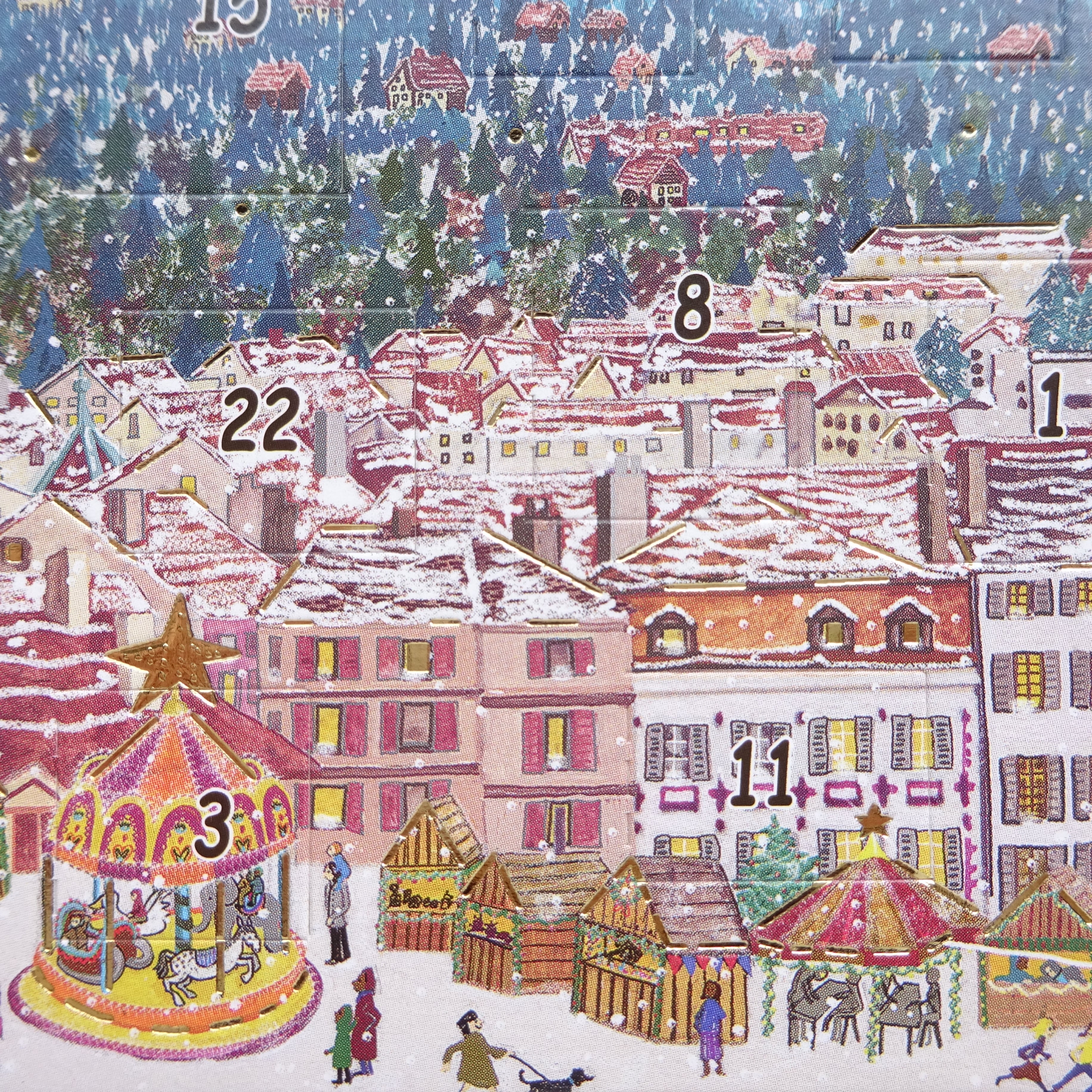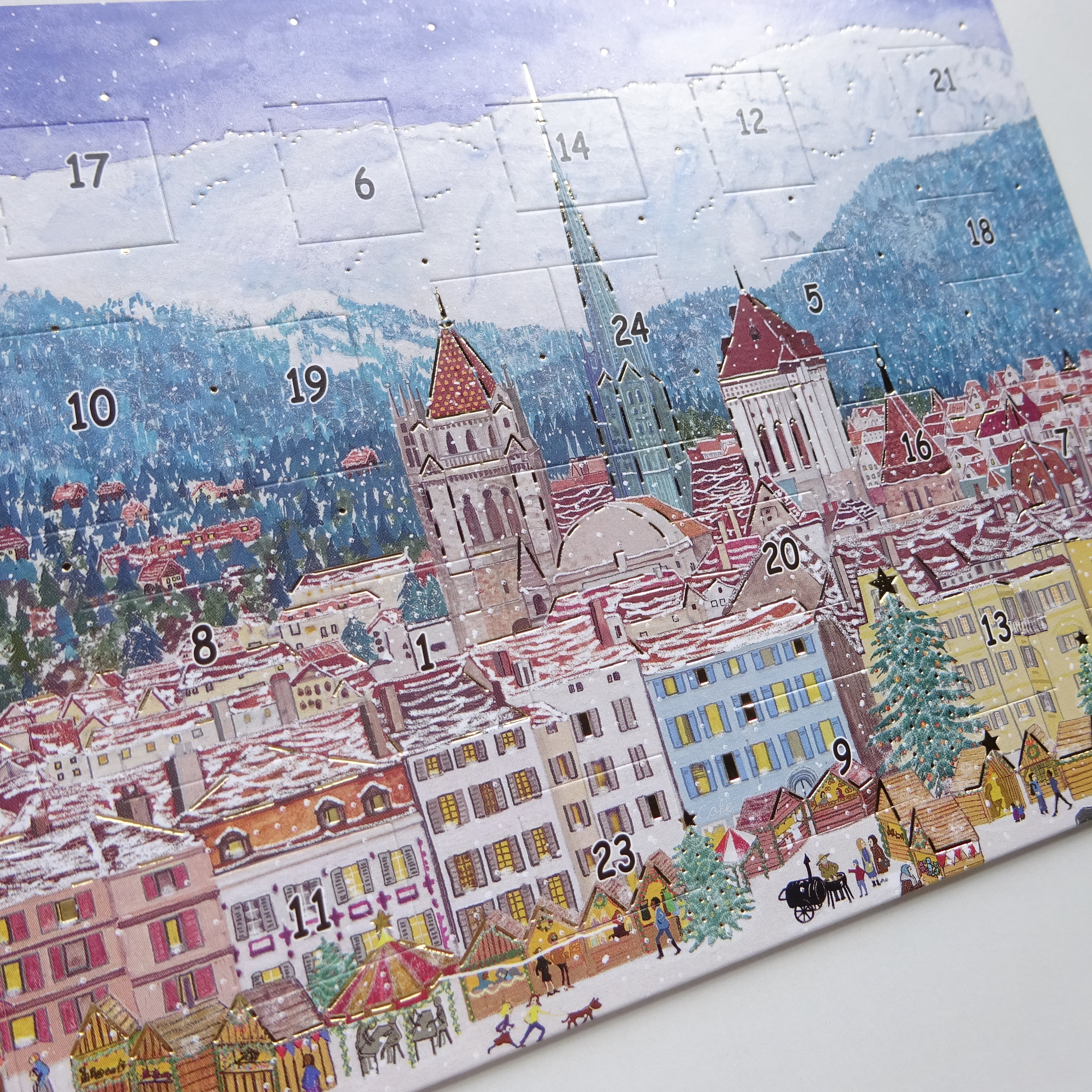 1日から24日まで毎日数字の箇所をめくって中の絵柄が楽しめるカードです。