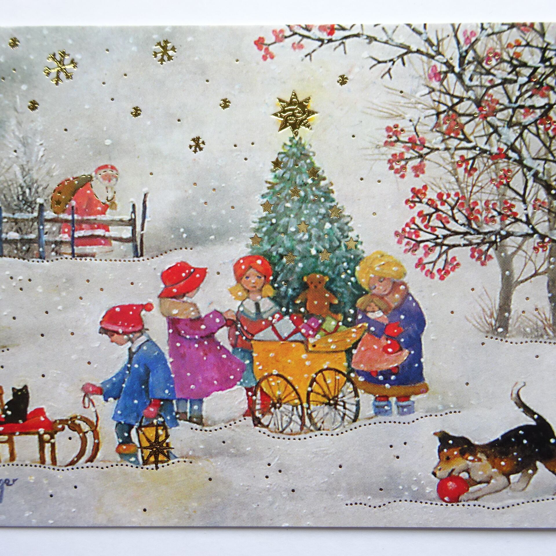 オーストリアの画家 絵筆を持った詩人 と言われているRENATE KOBLINGERのクリスマスポストカードです。眺めているだけでわくわくクリスマスが楽しめる絵です。裏面の印刷も楽しいですよね。