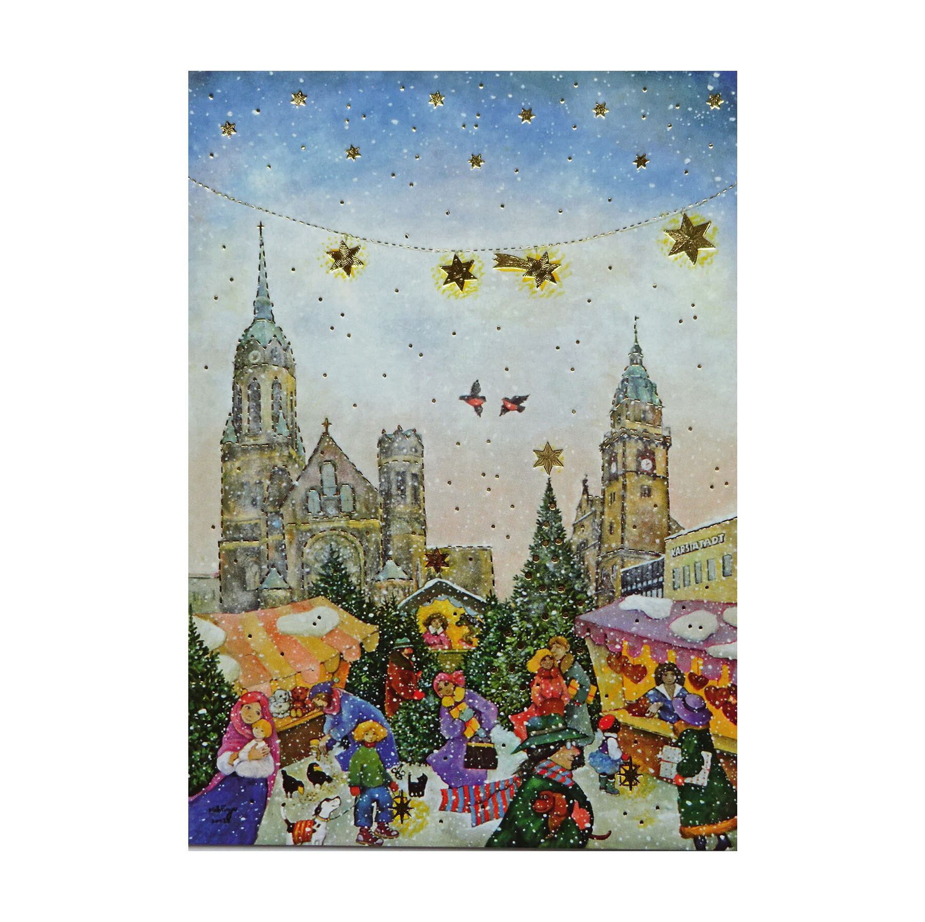 欧州の都市で開催されるクリスマスマーケットがモチーフのクリスマスポストカードです。