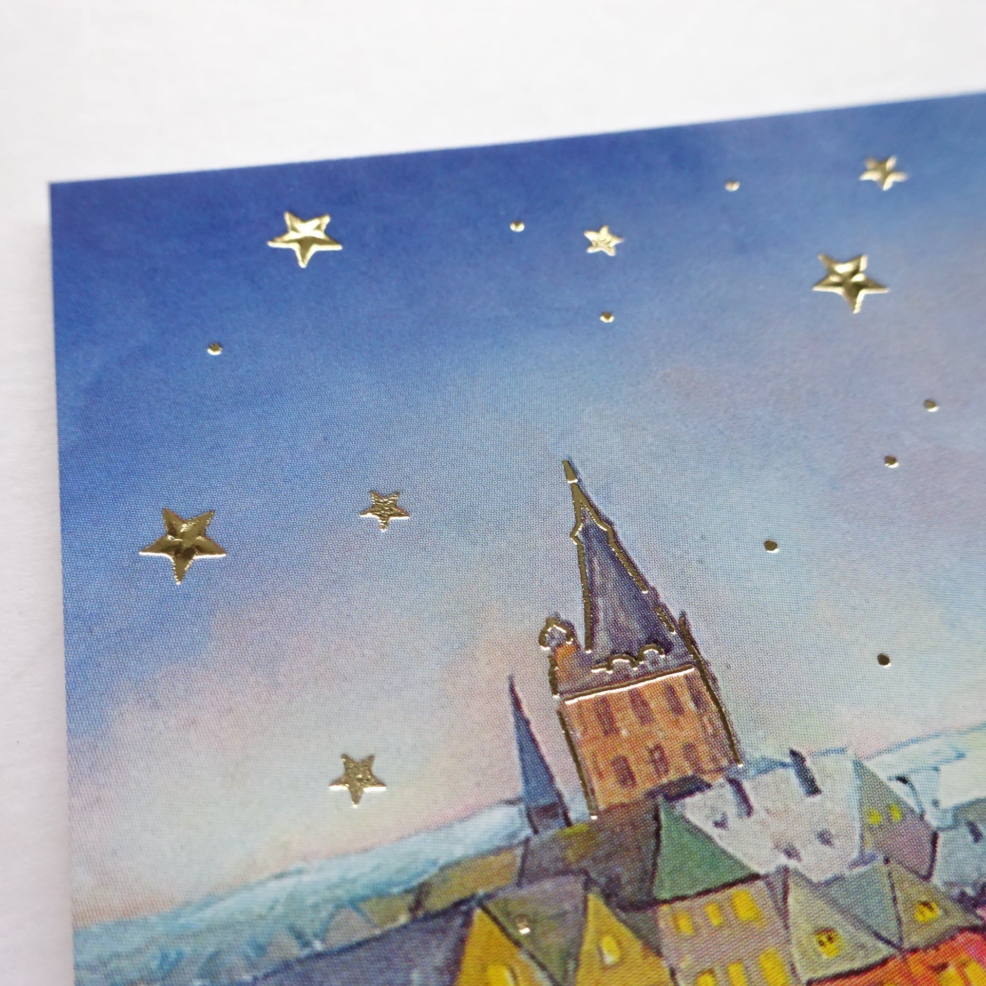 欧州の都市で開催されるクリスマスマーケットがモチーフのクリスマスポストカードです。