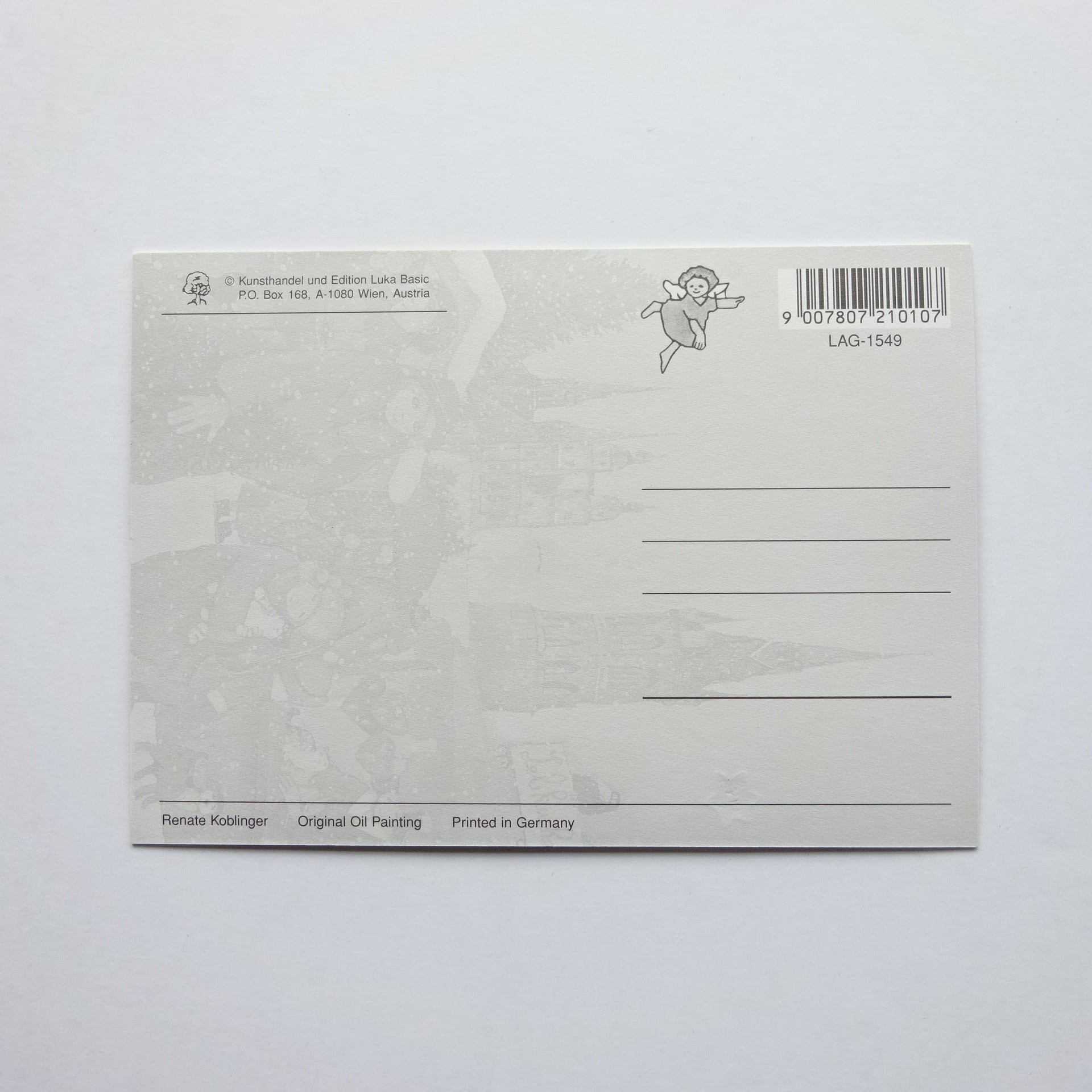 欧州の都市で開催されるクリスマスマーケットが描かれたポストカードです。