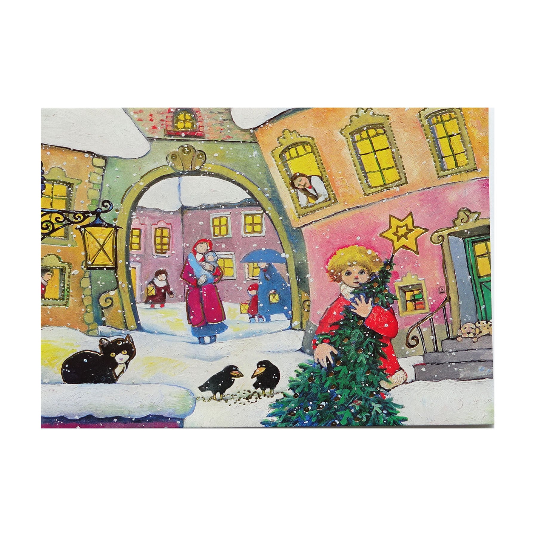 欧州の都市で開催されるクリスマスマーケットがモチーフのクリスマスポストカードです。