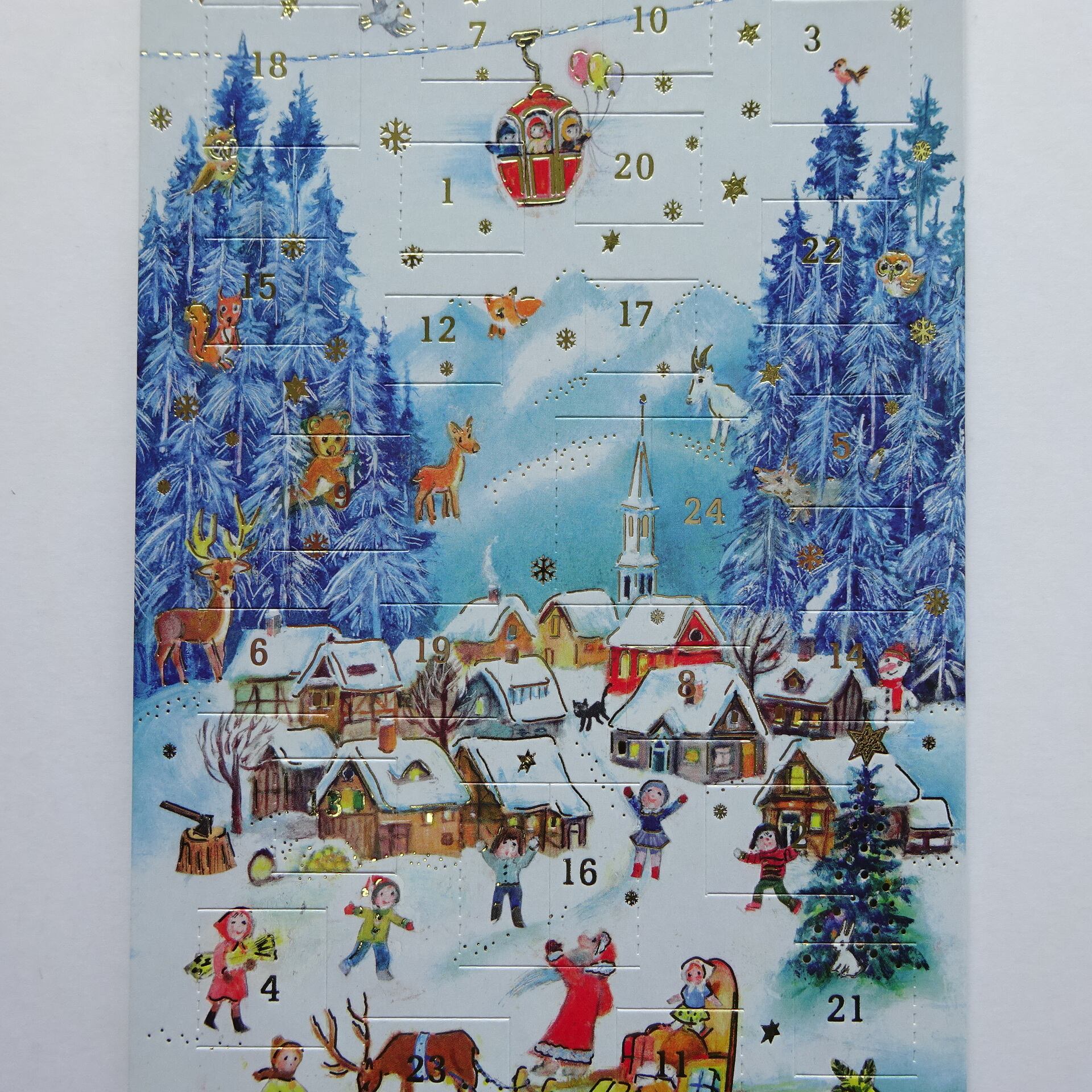 1日から24日まで毎日数字の箇所をめくって中の絵柄が楽しめるカードです。