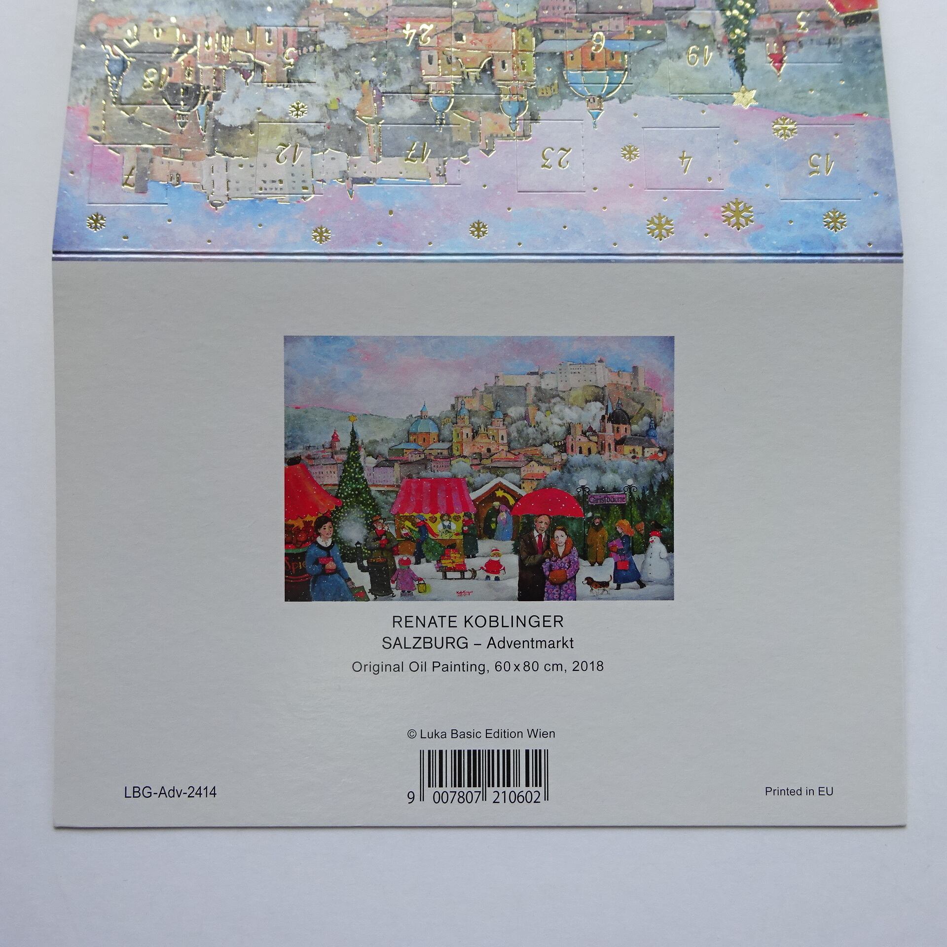 欧州の都市のクリスマスマーケットがモチーフのアドヴェントカードです。