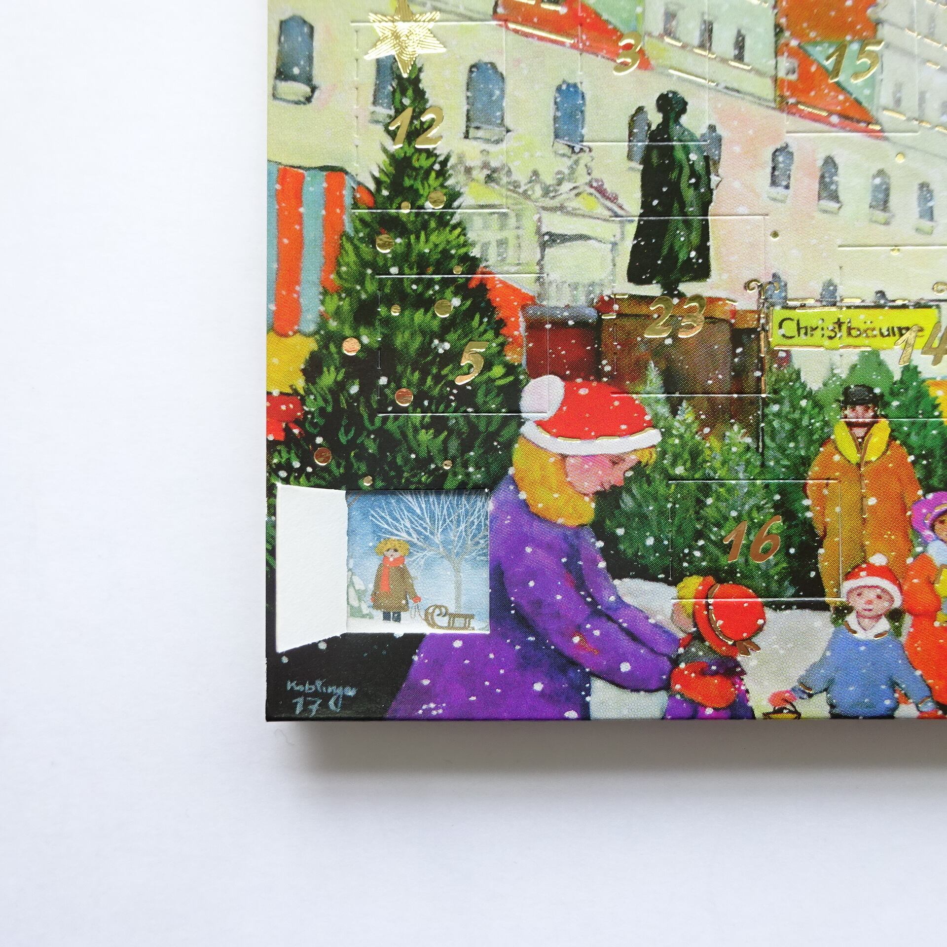 1日から24日まで毎日数字の箇所をめくって中の絵柄が楽しめるカードです。