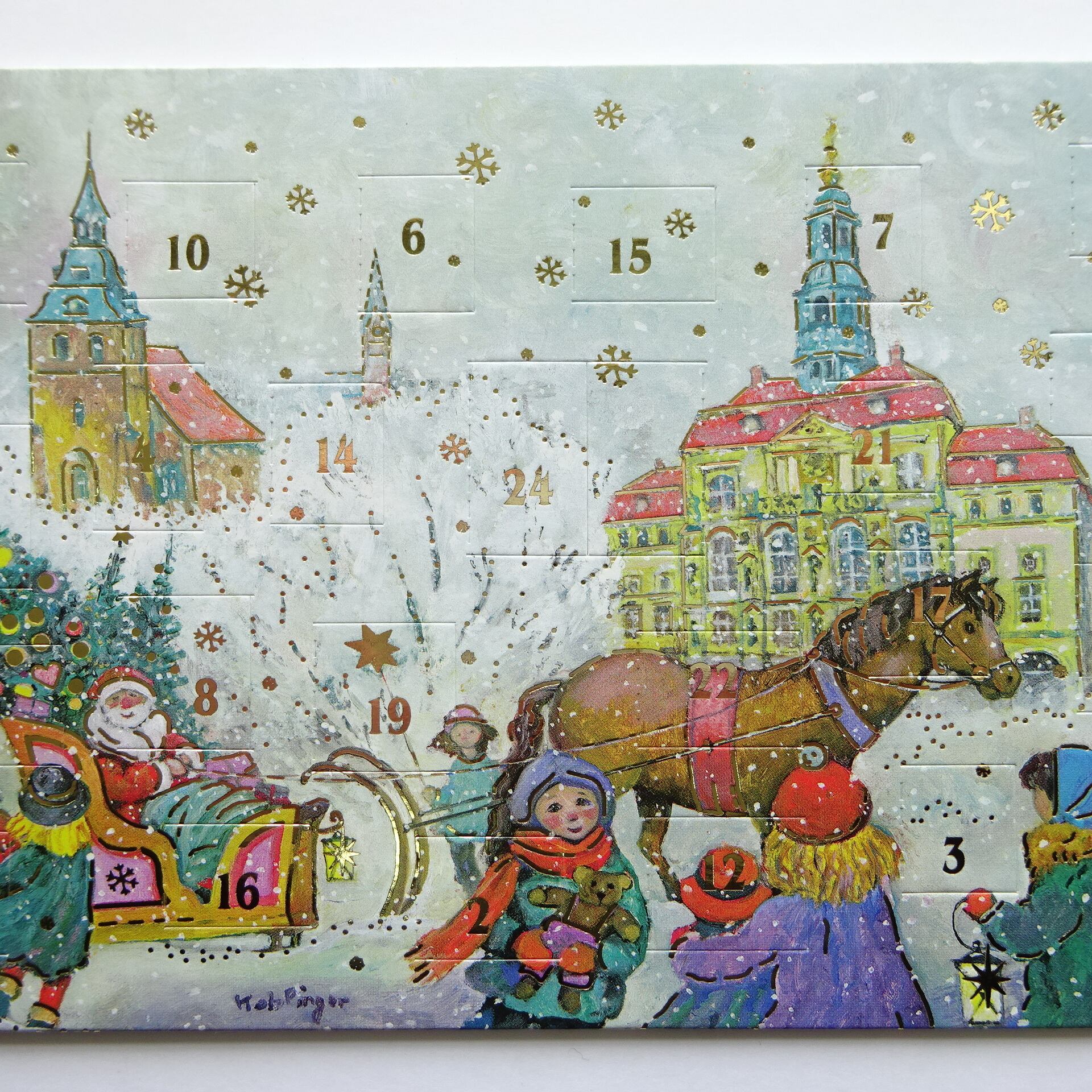 欧州の都市のクリスマスマーケットがモチーフのアドヴェントカードです。