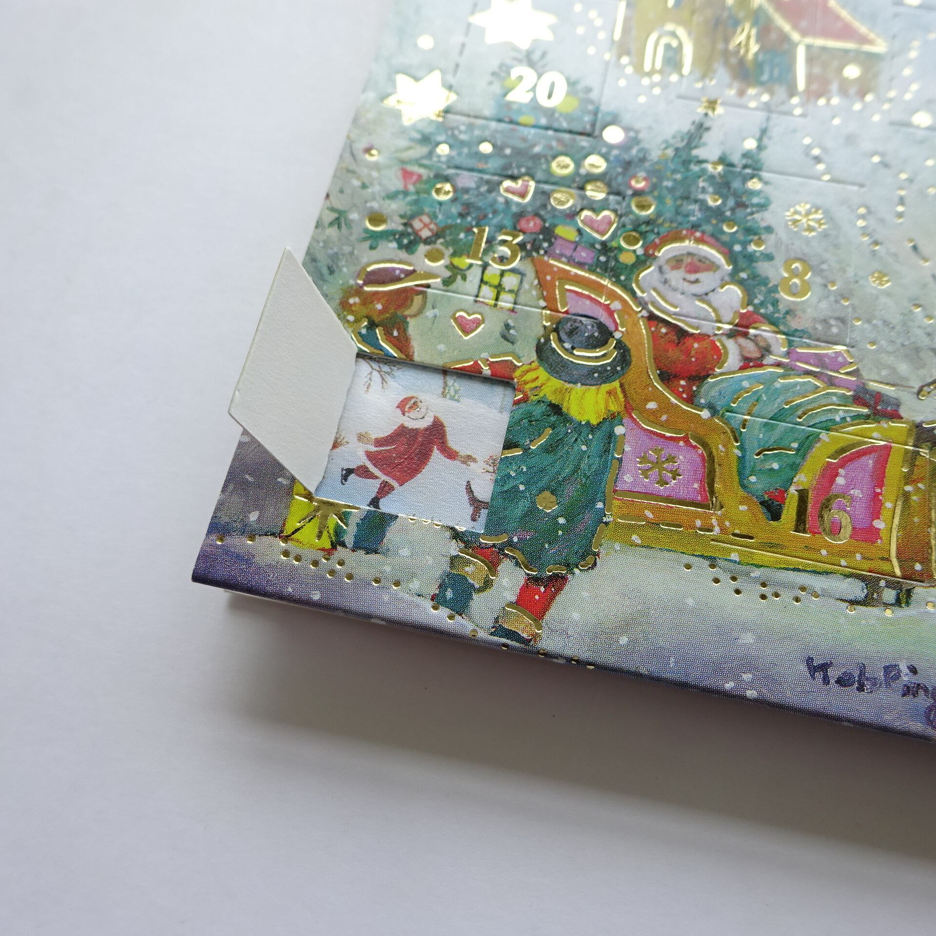 1日から24日まで毎日数字の箇所をめくって中の絵柄が楽しめるカードです。