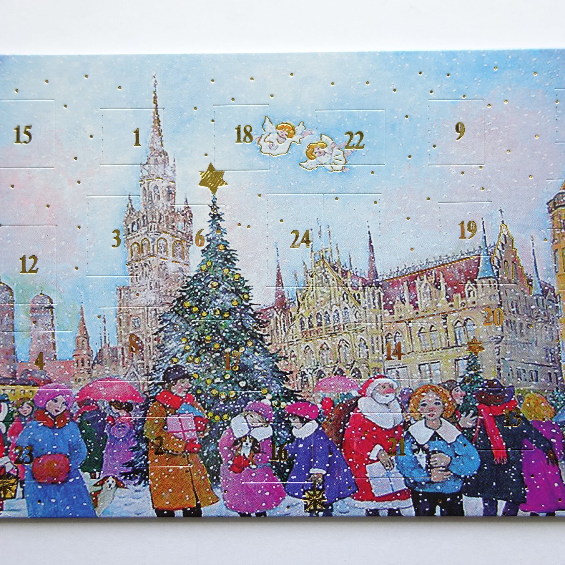 欧州の都市のクリスマスマーケットがモチーフのアドヴェントカードです。