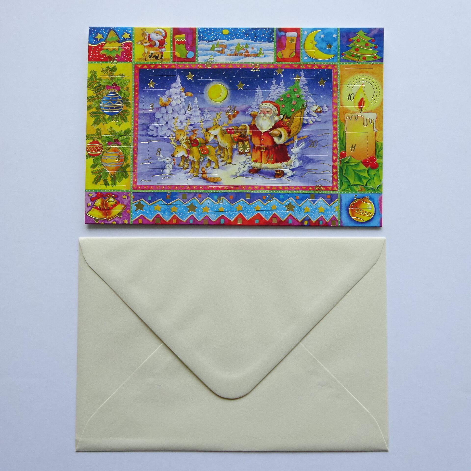 1日から24日まで毎日数字の箇所をめくって中の絵柄が楽しめるカードです。
