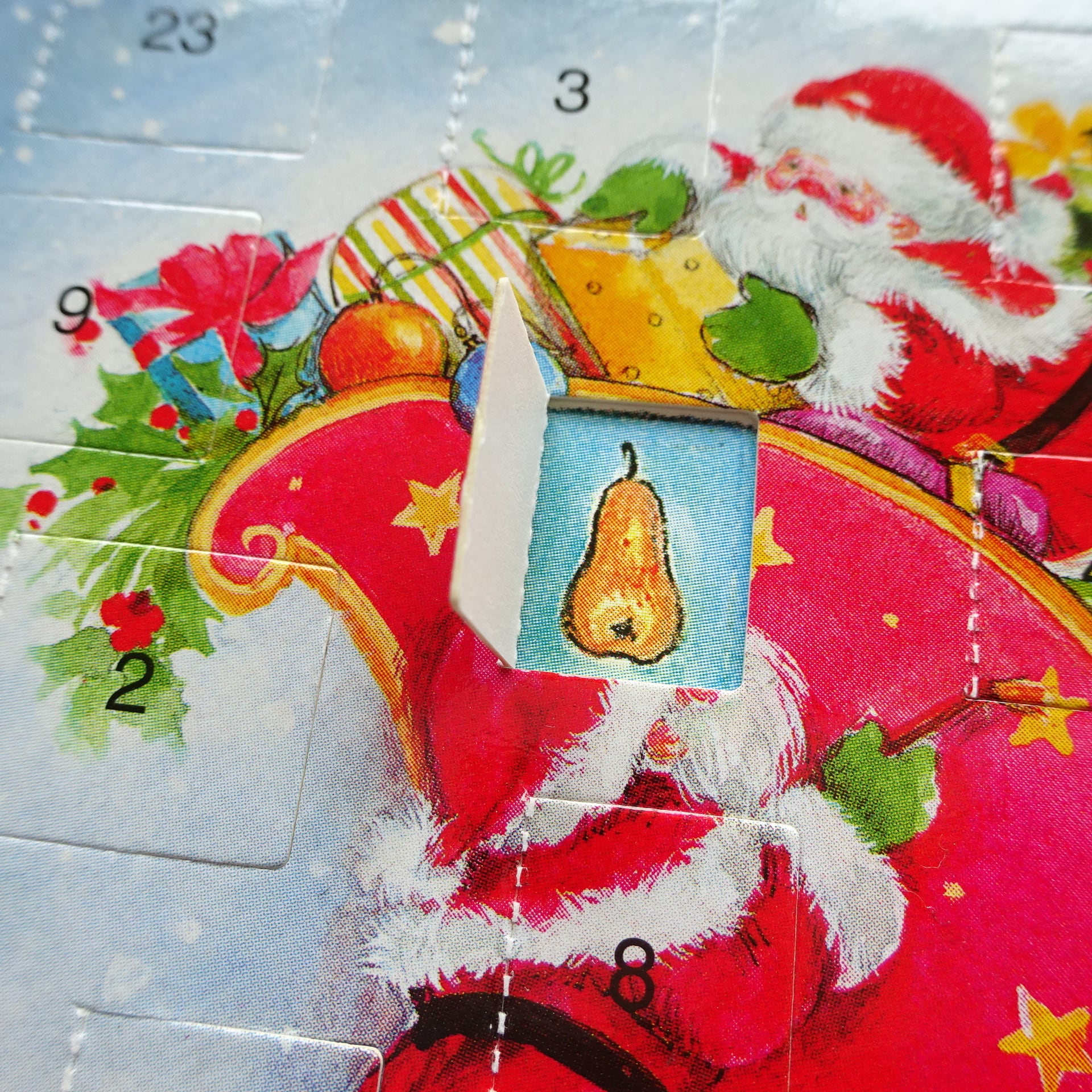 1日から24日まで毎日数字の箇所をめくって中の絵柄が楽しめるカードです。