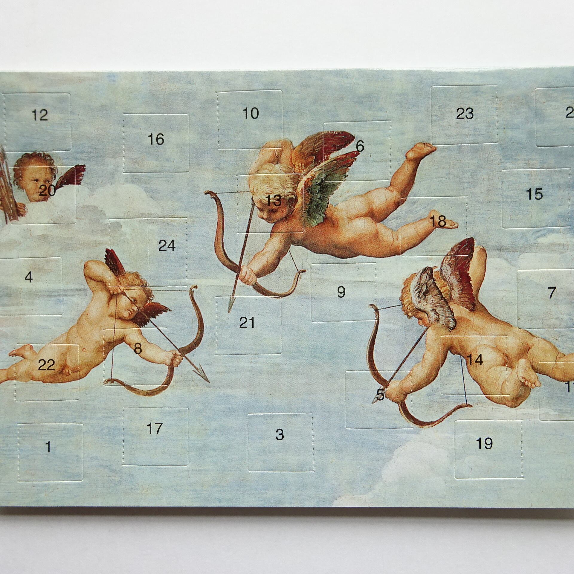 1日から24日まで毎日数字の箇所をめくって中の絵柄が楽しめるカードです。