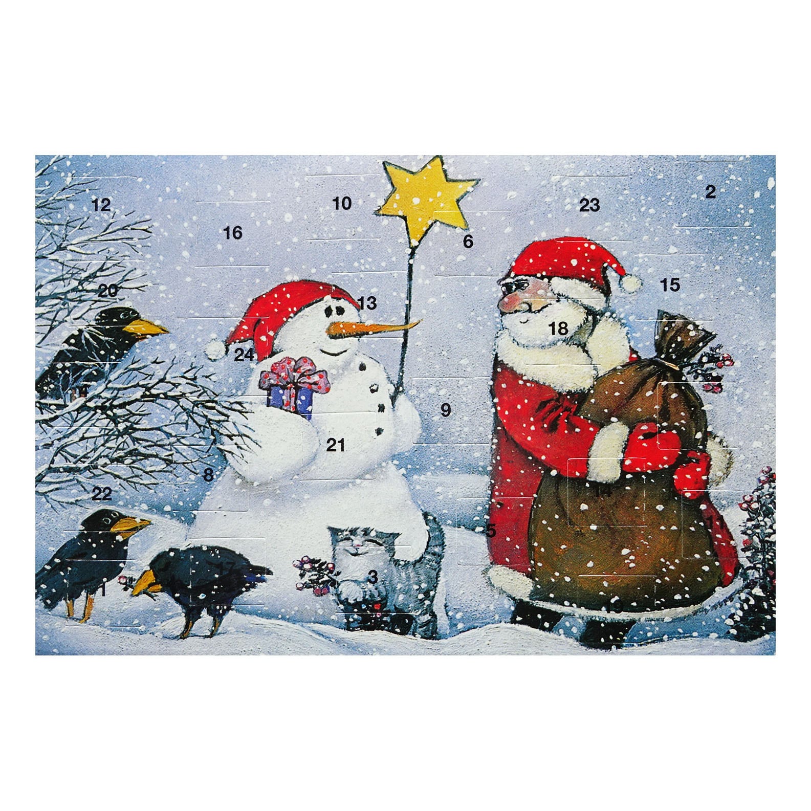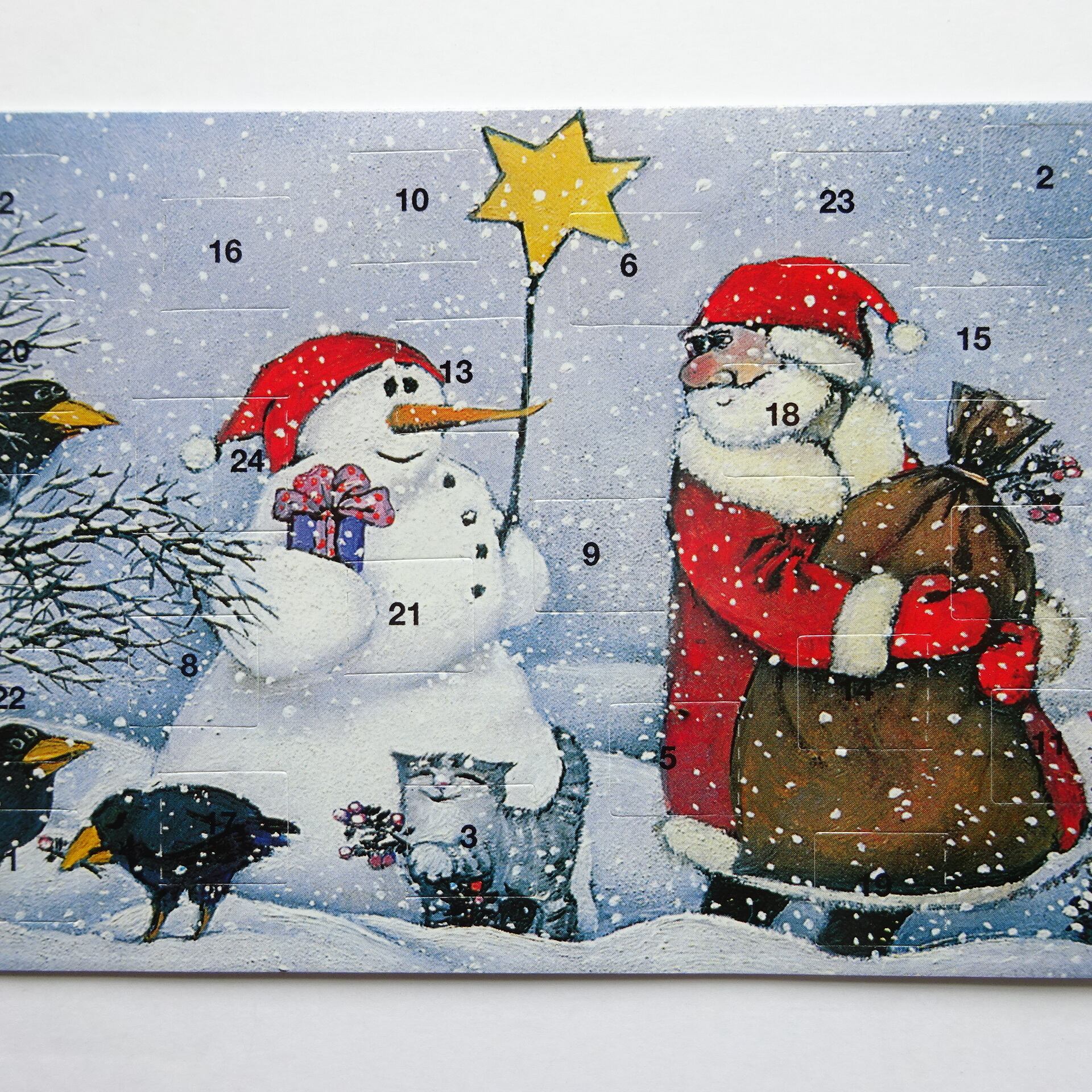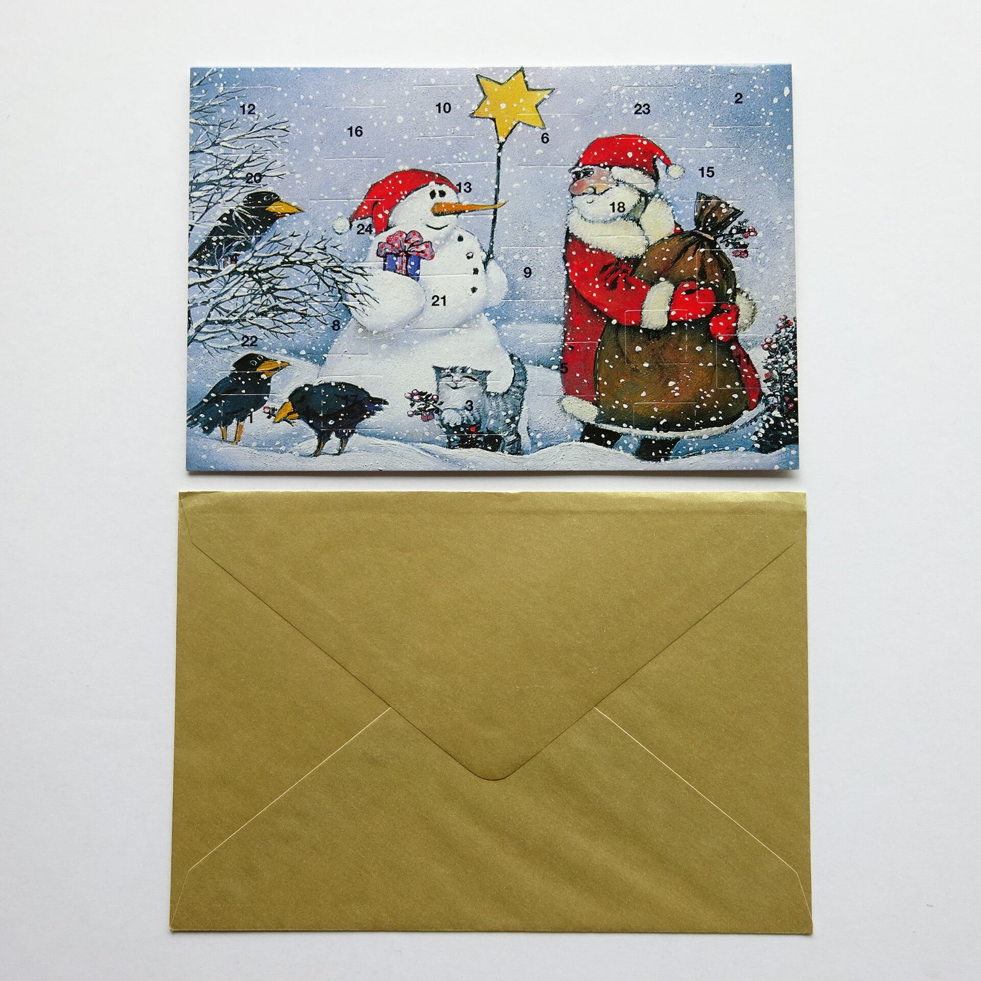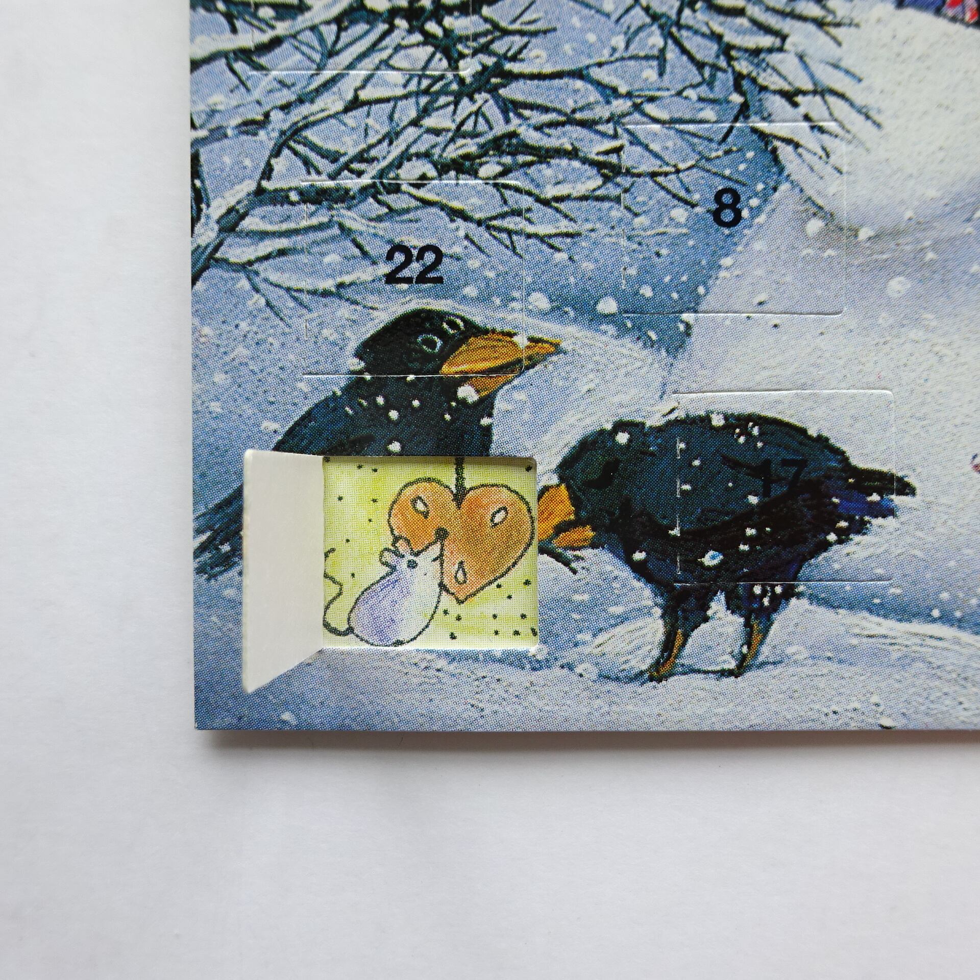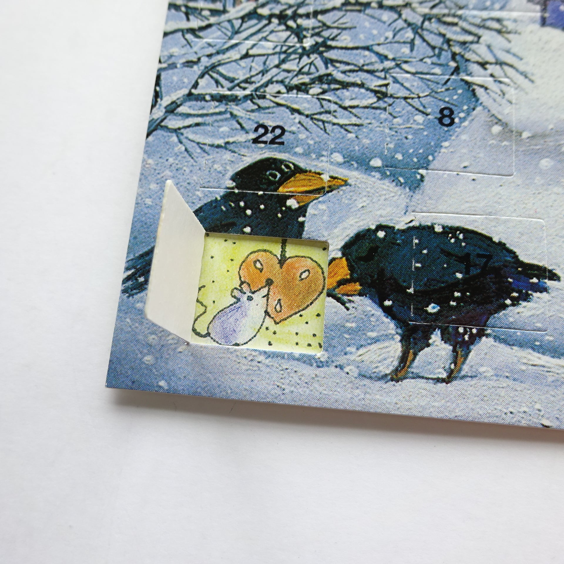 1日から24日まで毎日数字の箇所をめくって中の絵柄が楽しめるカードです。