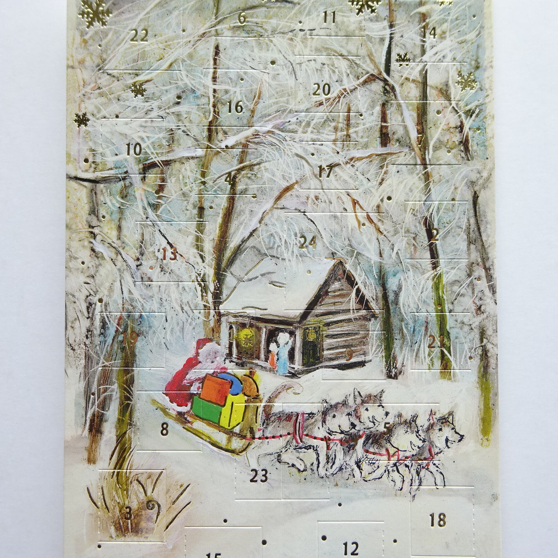 1日から24日まで毎日数字の箇所をめくって中の絵柄が楽しめるカードです。