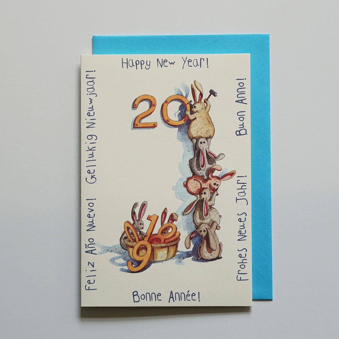 様々な国の言葉で「Happy new year」が書かれている楽しいデザイン。