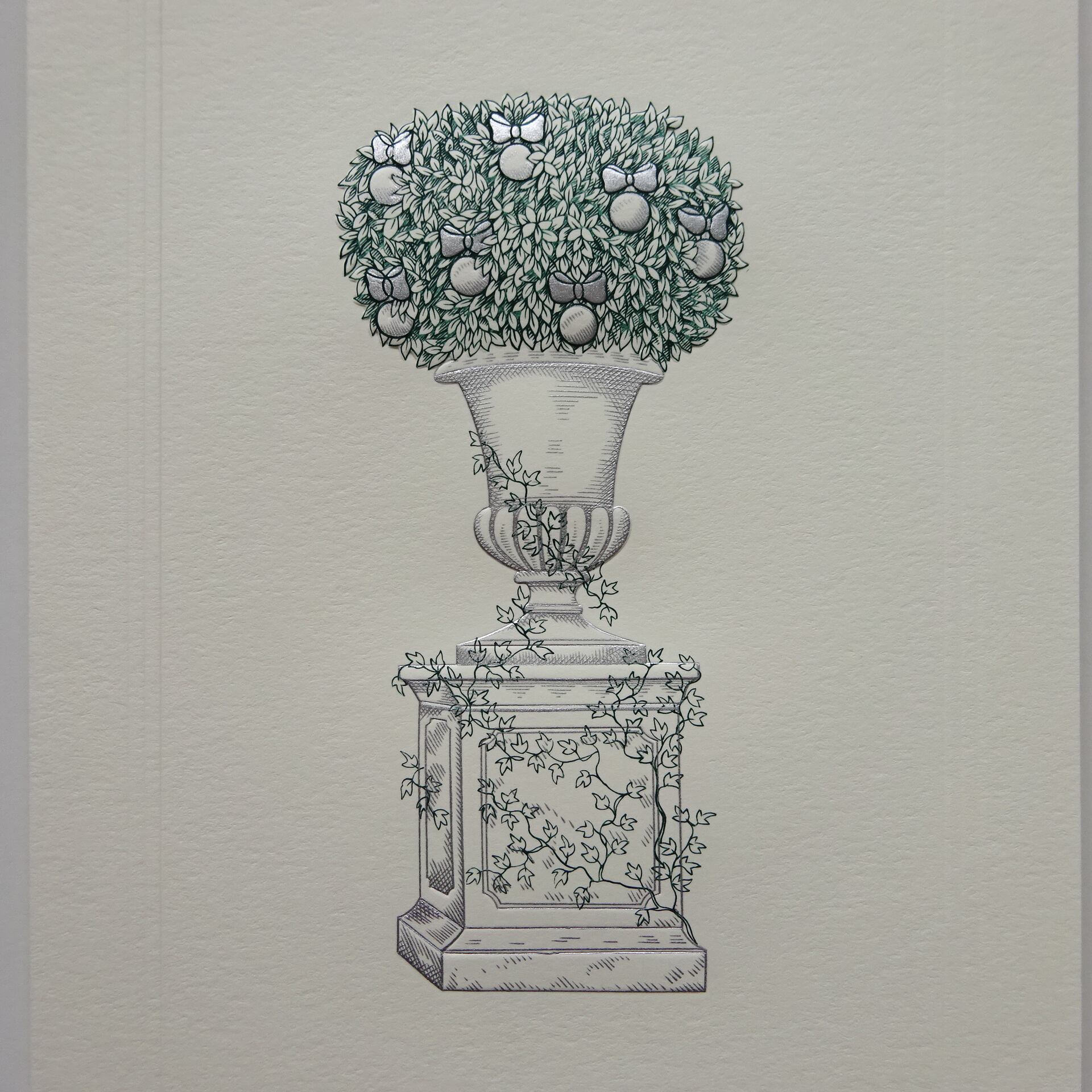 伝統的なクリスマスモチーフをエングレイビング(銅版印刷)の技法で印刷しています。