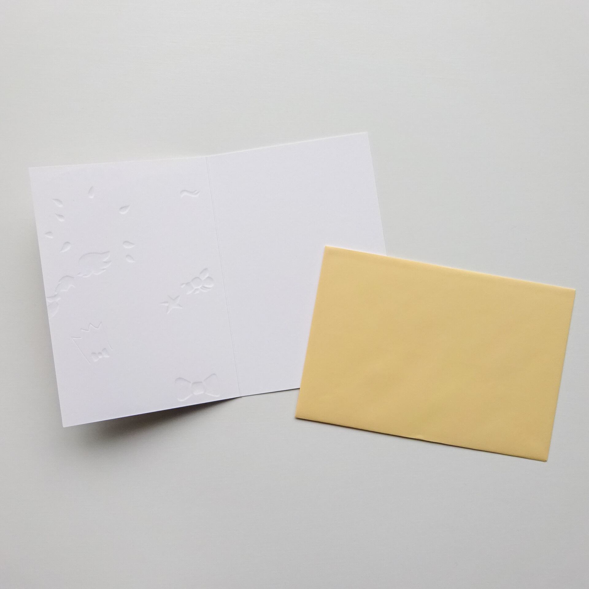 グリーティングカードの一部メタリックカラーの箔押し印刷とエンボス加工があります。