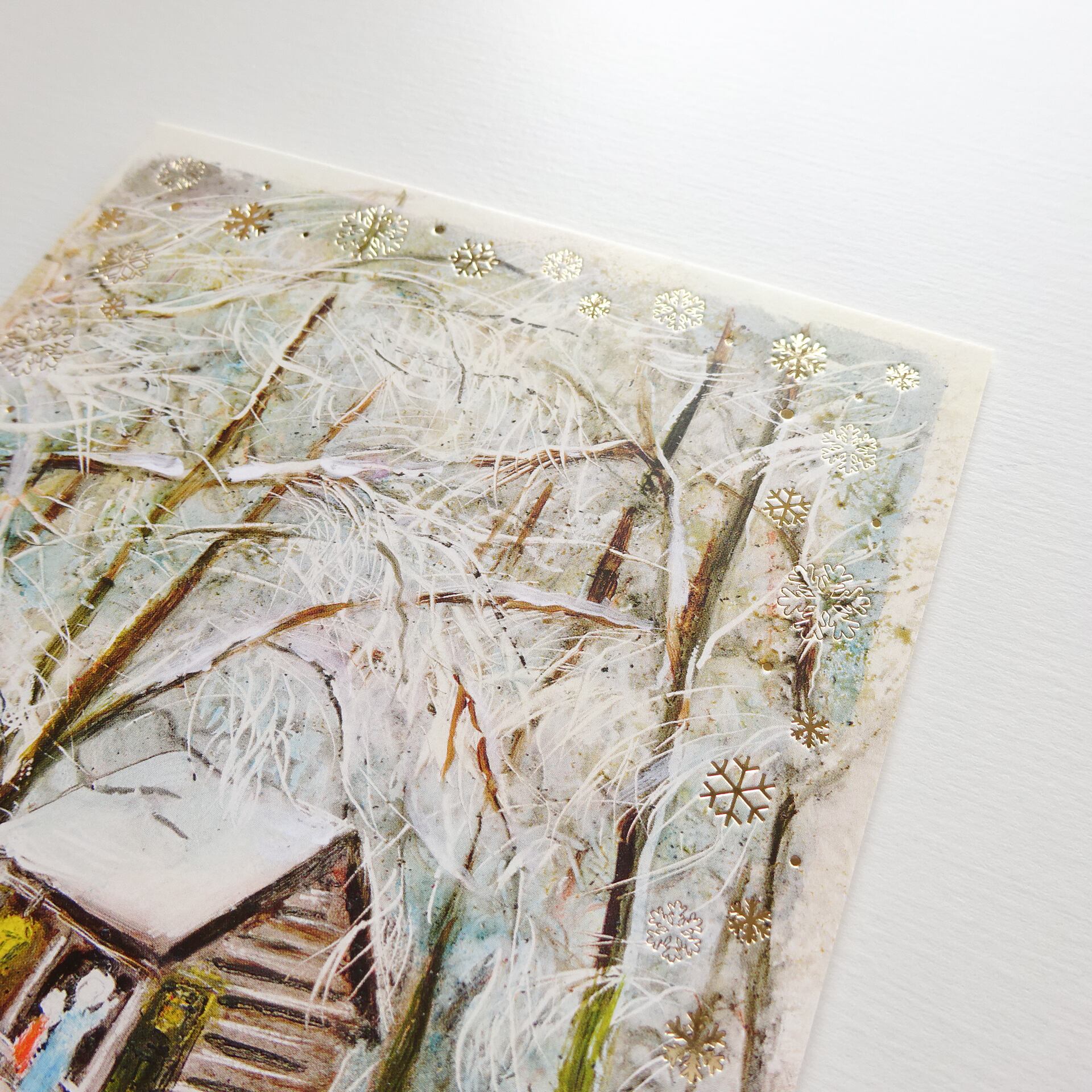 グリーティングカードの一部メタリックカラーの箔押し印刷が施されています。