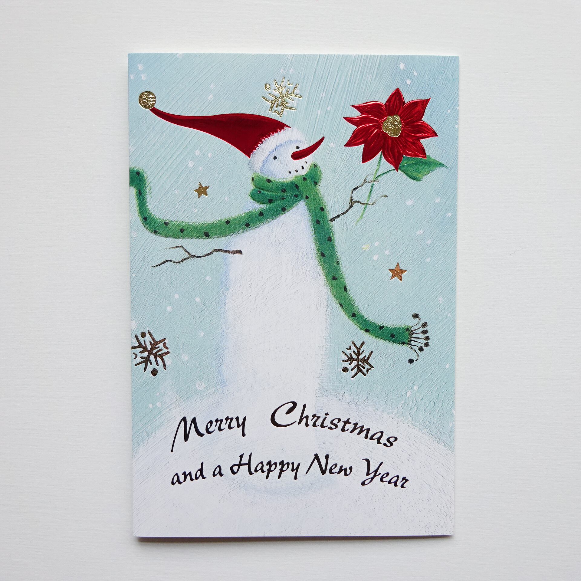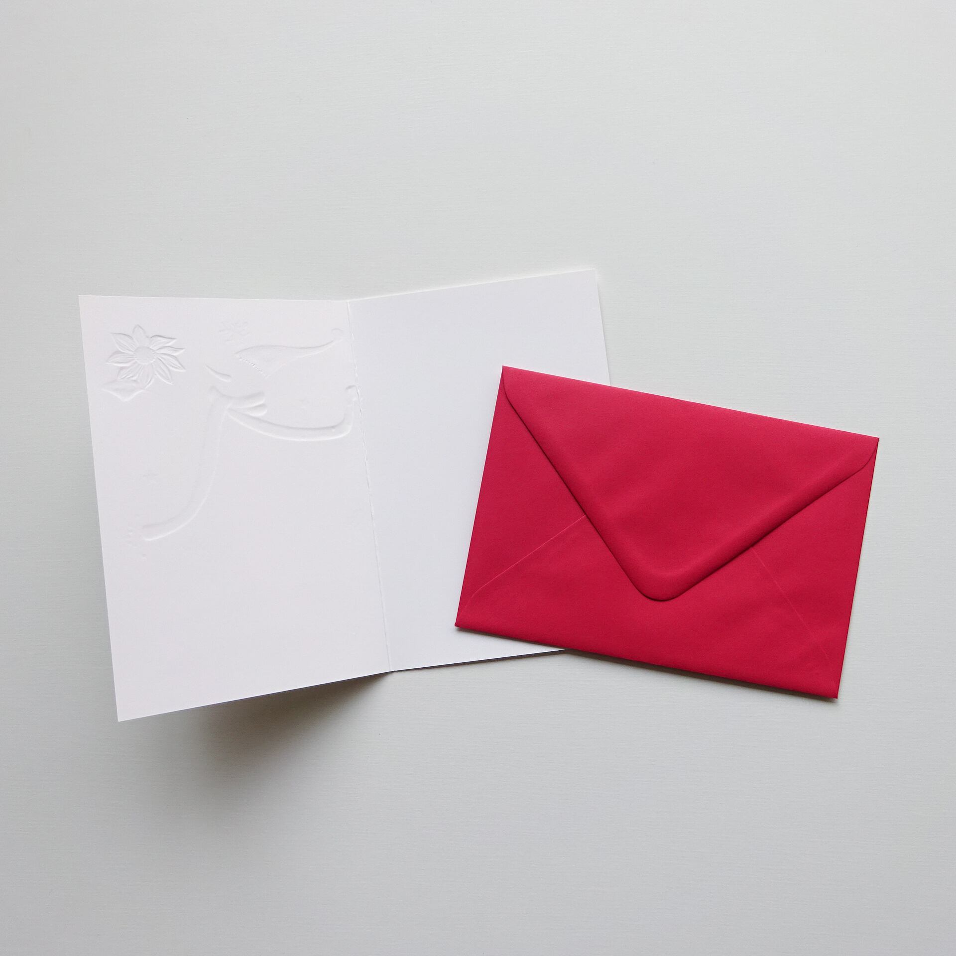 グリーティングカードの一部メタリックカラーの箔押し印刷とエンボス加工が施されています。