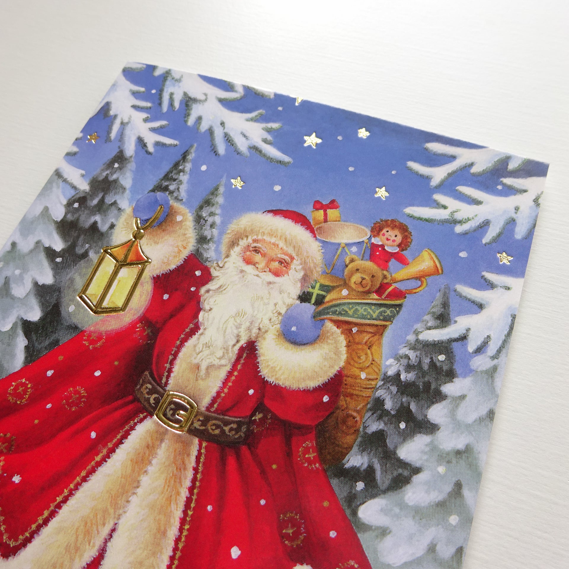 グリーティングカードの一部メタリックカラーの箔押し印刷とエンボス加工が施されています。