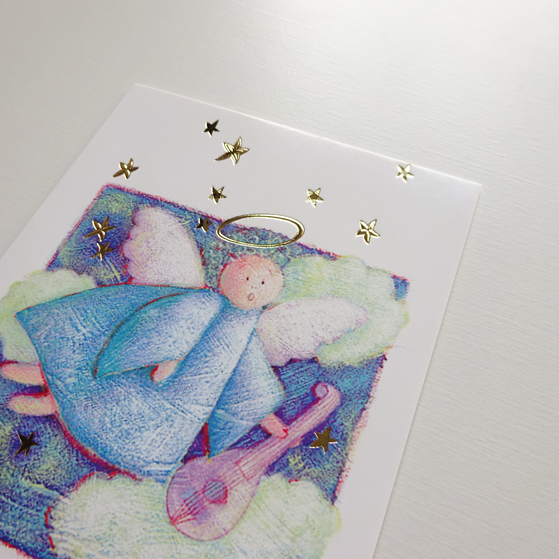 グリーティングカードの一部メタリックカラーの箔押し印刷とエンボス加工が施されています。