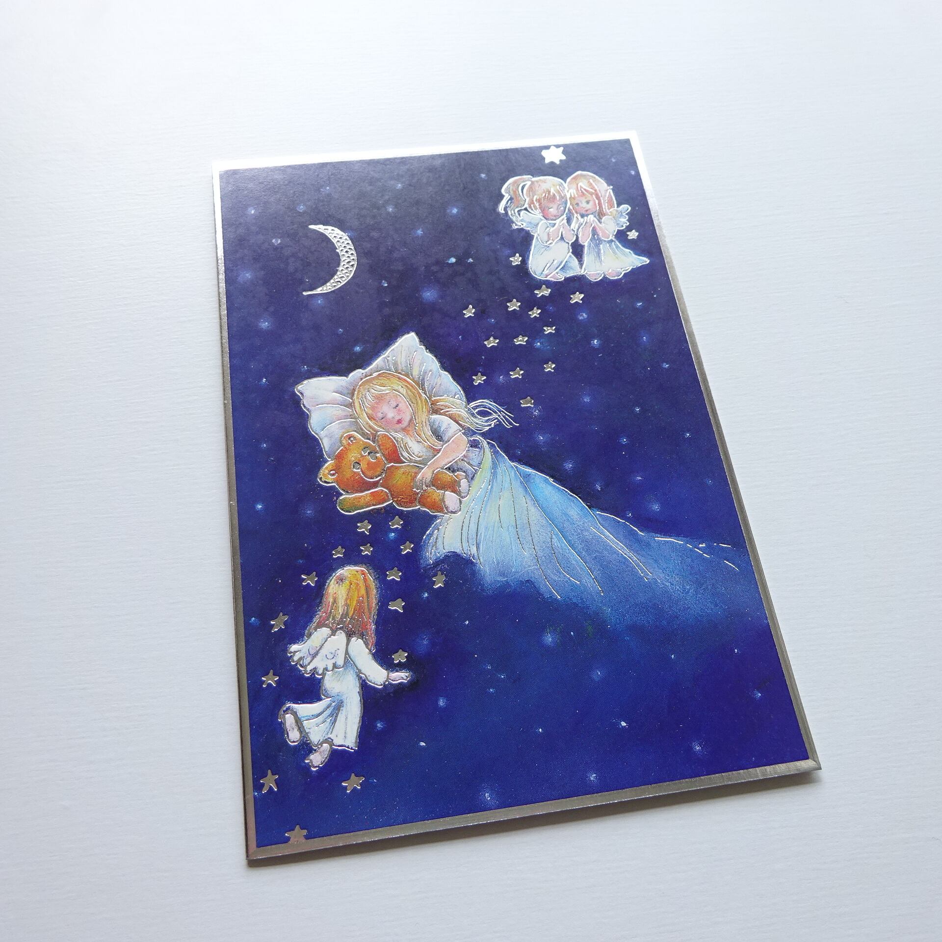 グリーティングカードの一部メタリックカラーの箔押し印刷とエンボス加工が施されています。