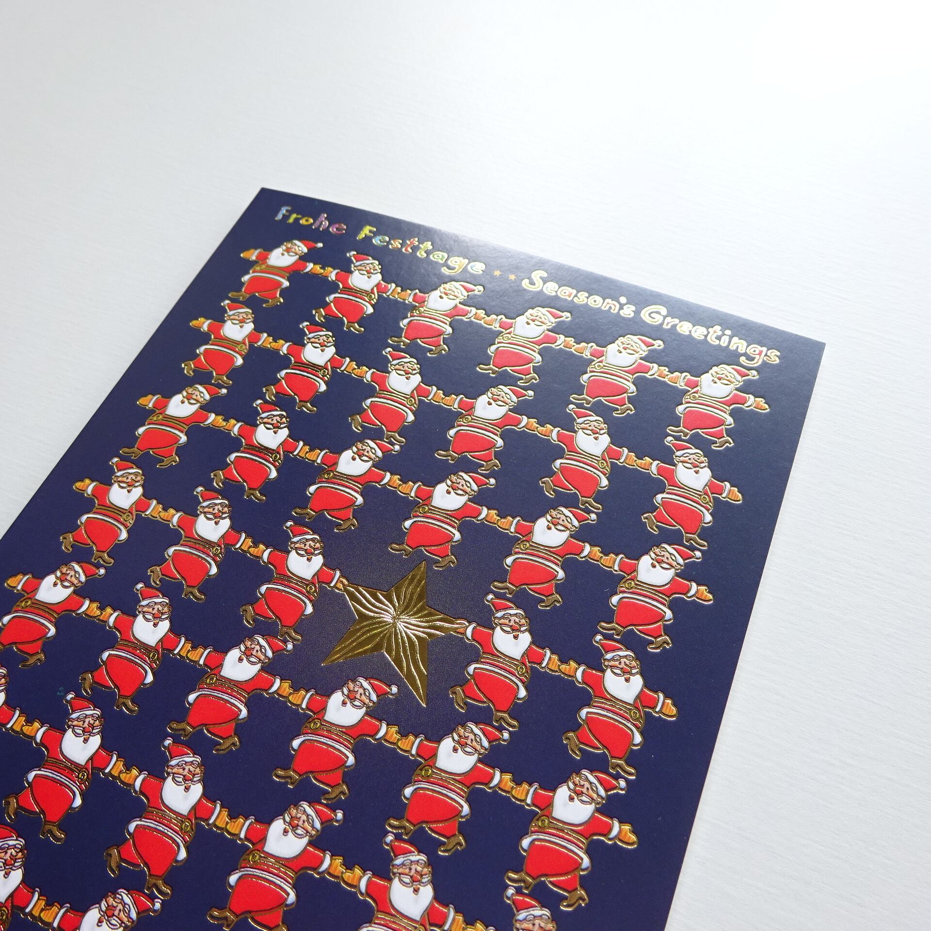 グリーティングカードの一部メタリックカラーの箔押し印刷とエンボス加工が施されています。