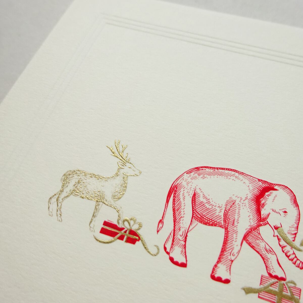 伝統的なクリスマスモチーフをエングレイビング(銅版印刷)の技法で印刷しています。